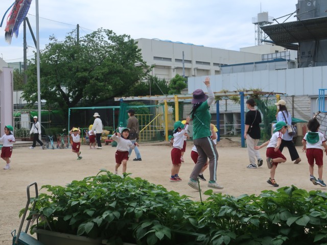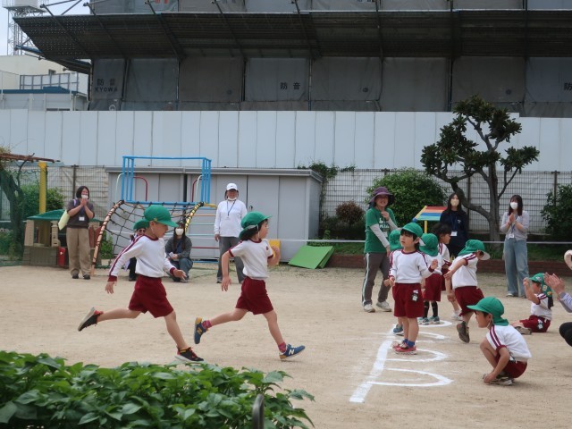 今日は保育参観でした。進級、入園して2週間ほど経ち、園庭で好きな遊びをしているところをお家の人に見てもらいました。友達やお家の人と一緒に遊んだり、体操をしたりして遊びました。またかけっこをして力いっぱい走ったり、友達を応援したりしました。また、5月にも保育参観があります。ご予定おきください。