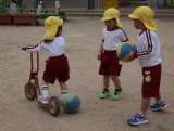 お天気がいい日が続き、園庭で体を動かして遊んでいる子どもたちです。スクーターに乗...