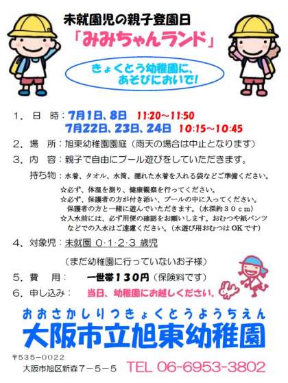 7月 みみちゃんランド プール遊びのお知らせ