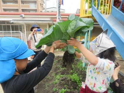 「うんとこしょ。どっこいしょ」友達と力を合わせて掘りました!
