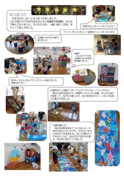 PTA主催のなつまつりで、いろいろな遊びを体験しました。