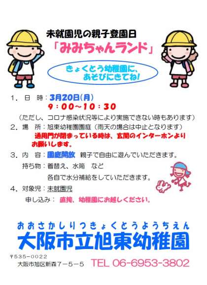 3月 みみちゃんランド お知らせ