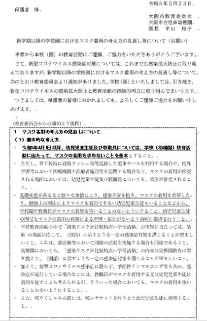 新学期以降の学校園におけるマスク着用の考え方の見直し等について(お願い)
