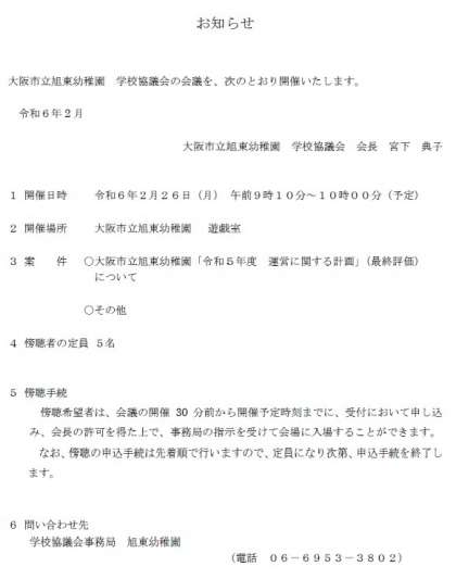 学校協議会の会議を、次の通り開催いたします。