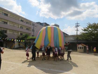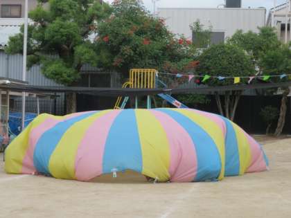 友達と力を合わせてパラバルーンでUFOをつくったり、大きな段ボールでUFOをつくったり、いろいろな表現方法を存分に楽しんでいます☆彡