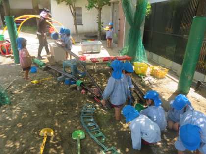 砂・土・水の感触を存分に味わい遊びました! 公開日 2025/07/27 更新日 2025/07/27 お知らせ 1学期も暑い日が続きましたが、子どもたちは、砂・土・水の心地よい感触を存分に味わいながらダイナミックに遊びました。水を流すコースづくりでは友達と試行錯誤しながら工夫してつくりました。遊びの中で思考力が育まれます。 いいね(0)