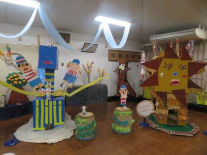 11月22日に作品展がありました。子どもたちが思いをこめてつくった作品を展示していますので、ぜひ見に来てください。雨の場合も作品展はご覧いただけます。晴れの場合は園庭開放も実施しますので、遊びに来てくださいね。お待ちしています。