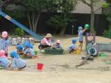 陽気な夏の日差しにウキウキしながら、泥遊びや水遊びを楽しみました。 泥のニュルニ...