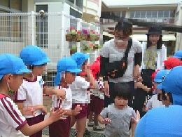 今日からまーくんクラブが始まりました!幼稚園の子どもたちと一緒に園庭でシャボン玉や水遊びなどをして遊びました。色水を移しかえたりスーパーボールをたくさん集めたりして楽しんでいました。