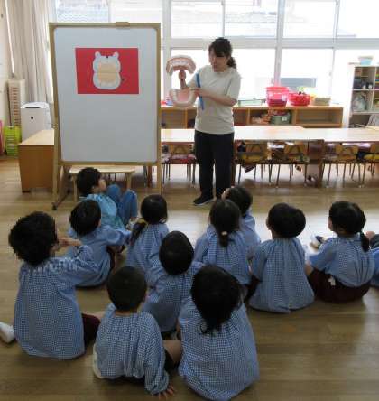 うめ組(4歳児)にむし歯予防についての保健指導をしました。