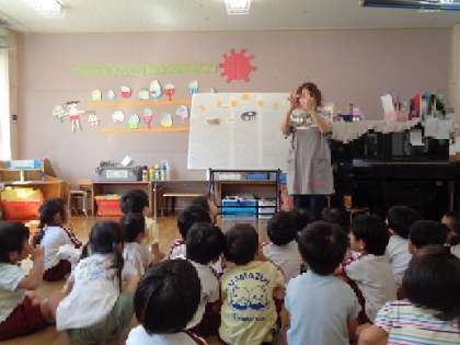 幼稚園でも、そら組、うめ組、なーちゃんクラブのお友達と一緒にペープサートを見ながら、お月見の由来を聞いたり、みんなで「お月見クイズ」をして遊びました。