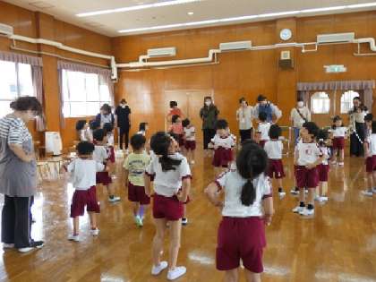 2学期が始まり、8・9月生まれのお友達のお誕生日会をしました。サッカーや三輪車など自分の好きなものや得意なことで入場しました。拍手で迎えられたり、プレゼントをもらったりすると、ちょっぴり恥ずかしそうにしていましたが、にこにこ笑顔で嬉しそうな子どもたちでした。