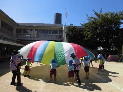 秋晴れの空の下、子どもたちは元気いっぱい体を動かして遊ぶことを楽しんでいます。