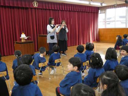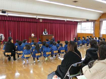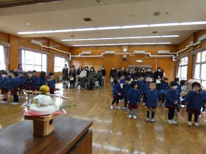 始業式では、園長先生から鏡餅の由来についての話を聞きました。