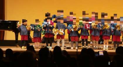 大阪市立城東幼稚園の友達と一緒に歌いました。