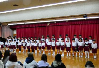 生活発表会を行いました。たくさんの保護者の方が見に来てくださり、緊張気味の子どももいましたが、温かいまなざしと拍手をたくさんいただいて、だんだんと気持ちもほぐれて笑顔で楽しむ姿が見られました。子どもたち一人一人のありのままの姿を受け止めて、子どもたちを応援してくださった保護者の方に感謝です。ありがとうございました。