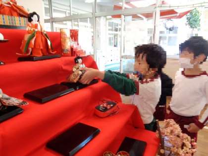 3月3日のひなまつりに向けて、幼稚園でも行事の由来や意味などを知らせながら、親しんでいきたいと思います。