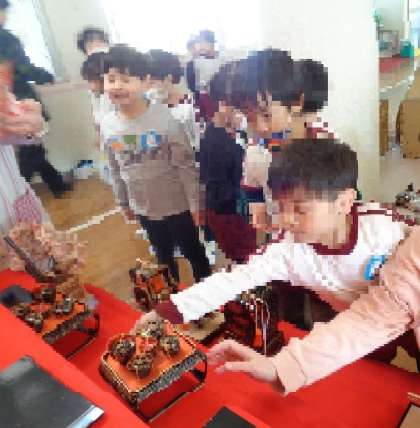5歳児そら組の子どもたちが、雛人形を飾りました。