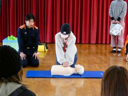 人形の模型に、心臓マッサージをしてみると、「すごくしんどい!」「どこに力をいれたらいいんだろう…」と想像以上の大変さを実感していましたが、「実際に経験することができてよかった」と保護者からの声を聞くことができました。