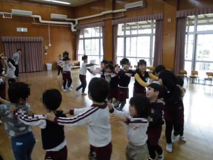 みんなで映画を楽しんだ後は、異年齢でじゃんけん列車をして大盛り上がり!