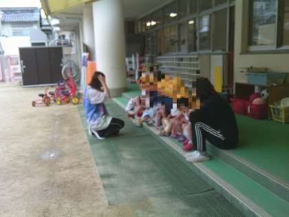 お家の方を待っている間も「ゆれてきた」と声をかけると、頭を守ってダンゴムシのポーズをしたり、幼稚園や道、お家の近くでもどのようなことを気をつければいいのか話し合ったりしました。