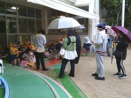 大きな地震が起き、津波警報も出たことを想定して、子どもたちと避難訓練を行った後、引き渡しを行いました。
