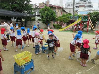なーちゃんクラブ(未就園児活動)が今日から始まりました。「なーちゃんのお友達が来てるー!!」「遊びに行ってもいい?」とそら組もうめ組も嬉しそうにしていました。園庭でシャボン玉をしたり体操をしたりしてたくさん遊びました。これから1年間たくさん遊びましょうね。
