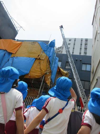 帰り道では消防車がはしごを伸ばす訓練をされており、まぶしすぎて見えないほど上がり降りてくるところも見ることができました。