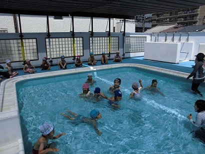 そら組(5歳児)のプール遊びが始まりました!大きいプールを見た子どもたちは、驚いたり喜んだりしていました。ちょっぴり苦手なシャワーも、プールに入ることを楽しみに頑張っていました。プールの約束事や先生の話をよく聞いて、いよいよプールに入水!!先生や友達と一緒に水の心地よさを感じて遊んでいました。うめ組(4歳児)ももうすぐはじまりますよ!お楽しみに!