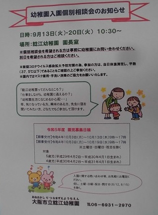 ☆幼稚園入園個別相談会のお知らせ