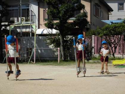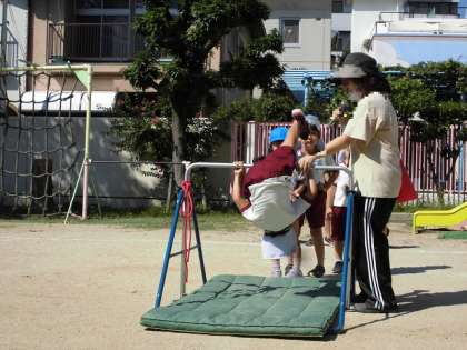 「竹馬」は、毎日少しずつ歩数が増えていきました。自信がついてくると高い竹馬にもチャレンジする姿が見られました。「鉄棒」では、前回り、逆上がり、足掛け回りなど好きな回り方をしてポーズをきめていました!