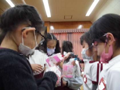 お別れ会の最後には4歳児から5歳児へ感謝の気持ちを込めてプレゼントを渡しました。幼稚園で一緒に過ごせるのも後少し。幼稚園で過ごせる残りの日々を大切に、楽しく過ごそうね!