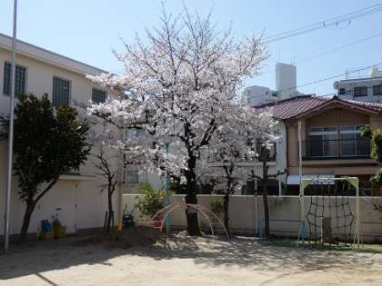 園庭の桜の花も満開に咲いています。