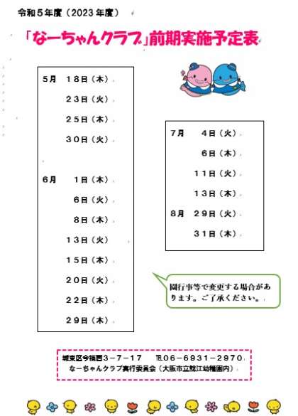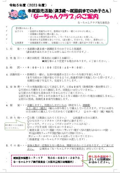なーちゃんクラブのご案内データはこちらまで 予定表データはこちらまで