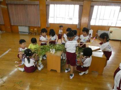 短冊には「みんながたのしく過ごせますように」「いつも、やさしくしてくれてありがとうございます」と書きました。