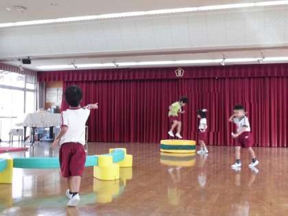 今年は朝から暑い日が多く、遊戯室で鬼ごっこをしたり滑り台やトランポリンをして遊びました。