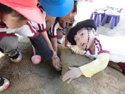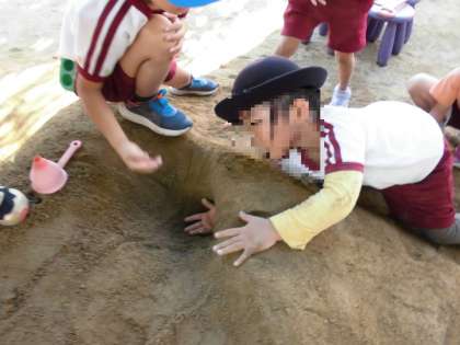 今日のキッズクラブ(預かり保育)で、土山にトンネルをつくりました!