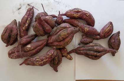 ツルが、たくさんあって、ひっぱっても、なかなかお芋が出てきません。