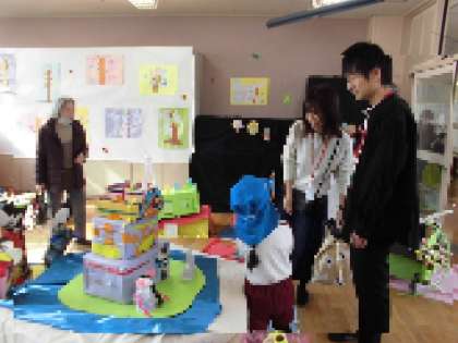 「見て見て!これなぁ・・・」等と嬉しそうに自分の絵や作品についてたくさん話をしていました。お家の方が子どもの思いを受け止めて、「すごいね!」「頑張って作ったんだね」等とたくさん褒めてくださり、満足感や自信につながったと思います。