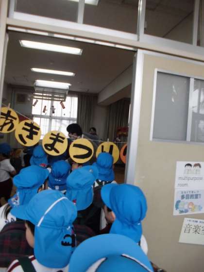 5歳児そら組が、聖賢小学校1年2組の皆さんの『あきまつり』に招待してもらいました。