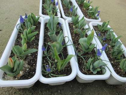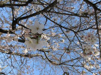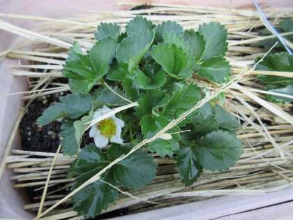 温かい陽気に、幼稚園の「桜」「チューリップ」「イチゴ」の花も咲いてきました。