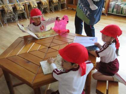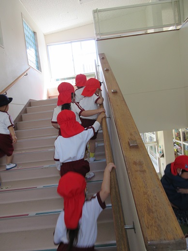 今日は新入園児のうめ組(4歳児)の子どもたちが園内探検をしました。そら組(5歳児)のお兄さんお姉さんの部屋や、先生たちのお部屋や園長室、いろいろな所を見て回りました。絵本室では、「どんな絵本があるんだろう」とワクワクしていました。好きな絵本を1冊選んで自分たちの絵本棚に追加しました。また好きな時間にたくさん見たいと思います。