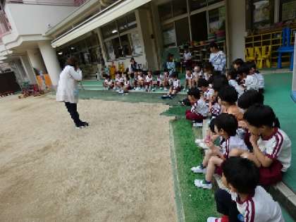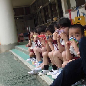 火事を想定して避難訓練をしました。4歳児うめ組は初めての訓練でした。非常ベルの音にビックリする様子も見られましたが、5歳児そら組が避難する様子を見て安心できたようです。5歳児そら組は先生の話を聞いて、口をハンカチでおさえスムーズに避難することができました。火災から身を守る方法を知り、安全に避難することができるよう今後も継続して取り組んでいこうと思います。