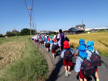お天気も良く、芋畑までの道中では稲穂や柿の木、コスモスの花を見ながら歩きました。