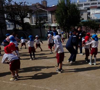 6日・7日の2日間で横堤中学校から4名の中学生が職場体験に来てくれました。最初はお互い緊張した様子でしたが、お兄ちゃん・お姉ちゃん先生と一緒にかけっこをしたり、絵本を読んでもらったりするうちに、どんどん仲良くなっていきました。