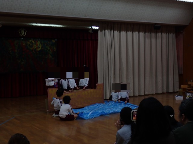 そら組は、劇遊びでは「じごくのそうべえ」をしました。自分たちでセリフを考えて、大道具も全部自分たちで運びました。さすが年長児のそら組さんです!当日はどの子も緊張する気持ちはありつつも、劇が始まると堂々としていました。また、友達と声を掛け合って、みんなで劇遊びに取り組む姿勢がとても頼もしく成長した姿を感じられました。