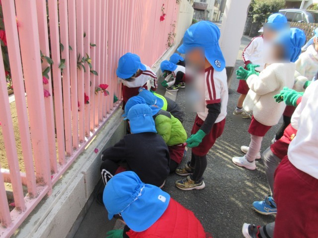 今日は大阪マラソンクリーンUPで園内や幼稚園の周りをきれいに掃除しました。「きれいになったら気持ちいいなぁ」「ここもきれいにしよう!」と、みんなでピカピカにしました。