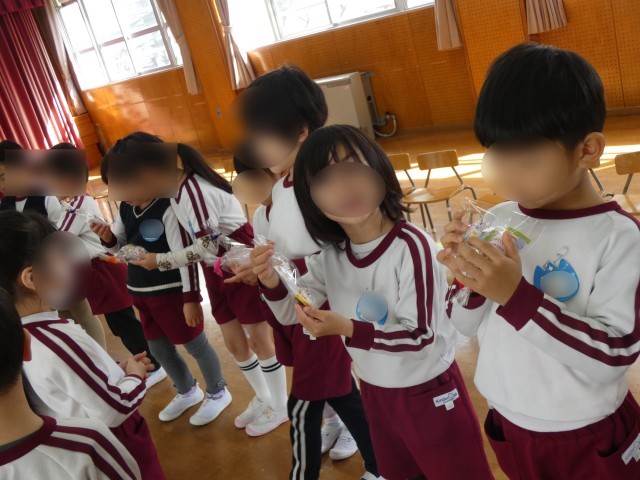 最後は、お互いにサプライズでプレゼントをつくっていて、「ありがとう」「頑張ってね」の気持ちと共にプレゼントを渡し合うと「めっちゃかわいい!」「お手紙うれしい!」と大事そうにしていました。お弁当も一緒に食べてとても楽しい1日になりました。