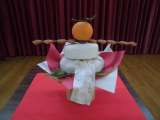 12月にお餅つきをして、幼稚園のみんなでつくった鏡もちが飾りを付けていました。子...