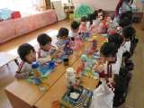うめ組(4歳児)がそら組(5歳児)の部屋にお邪魔して、うめ組で最後のお弁当を食べ...